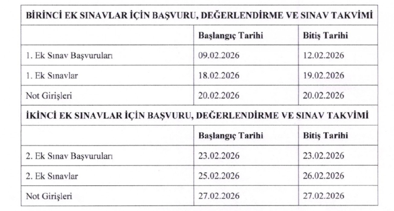 Azami süresini dolduran öğrencilerimize verilen ek sınav hakkı başvuru tarihleri tablodaki gibidir.